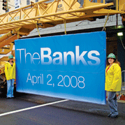 The challenge of this project was to design a large double-sided banner frame that can be easily installed, structurally sound, and hang safely from a large moving crane. The large banner was used to promote the new BANKS project in the Red’s opening day parade.